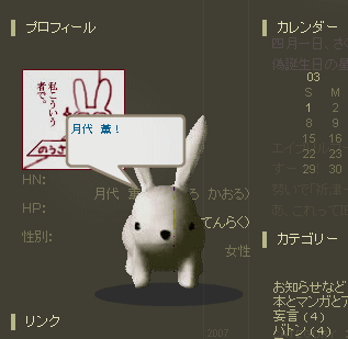 エイプリルフール・バグ(?)で、ブログペットのともっちが、ペットケージの外に出てますー!!   呼ぶ(クリック)と、突進してくるよ~  激かわいいぞ、ともっち! その勢いで「祈津ーっ!」とか言えばいいのに(笑)